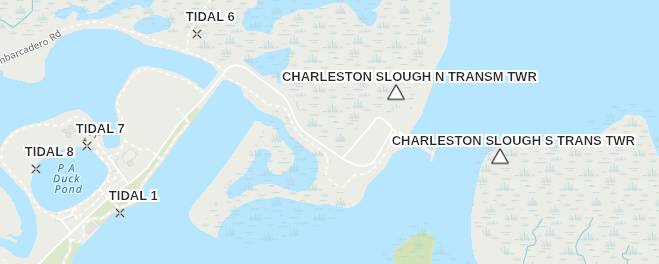 When I first wingfloiled at the Palo Alto site on July 17, 2025, Bill Keeting told me that it was safe to foil there when the water is at or above the bottom of the collar on base of the electrical power lines tower closest to the dock. I have determined that this is approximately a tide level of 6.8 ft. As the tide goes out, the mud first shows on the south side of the creek channel that runs in front of the dock about 50 ft north east of the north end of the dock. I estimate the tide level to be 3.2 ft when the mud first becomes visible on a receding tide. Both of these levels are shown in the plots.